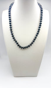 Hand knotted gemstone necklace made with 8mm semi-precious black onyx faceted gemstones.