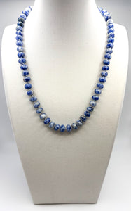 Hand knotted gemstone necklace made with 8mm semi-precious sodalite gemstones.
